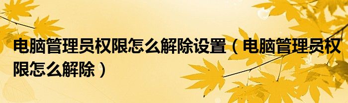 关于电脑管理员权限怎么解除设置,电脑管理员权限怎么解除这个很多人还不知道,今天菲菲来为大家解答以上的问题,现在让我们一起来看看吧!