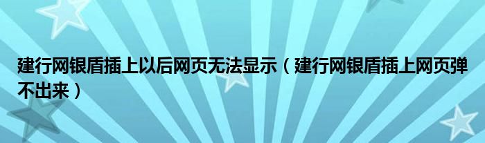 关于建行网银盾插上以后网页无法显示,建行网银盾插上网页弹不出来这个很多人还不知道,今天菲菲来为大家解答以上的问题,现在让我们一起来看看吧!