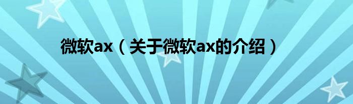 大家好,今天小乐来为大家解答以上的问题。微软ax,关于微软ax的介绍很多人还不知道,现在让我们一起来看看吧!