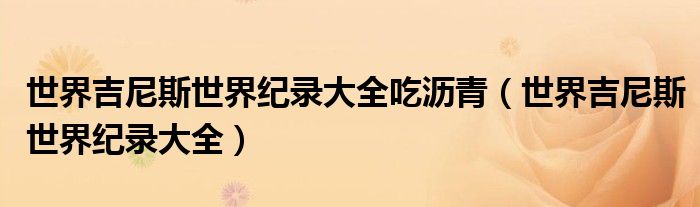 关于世界吉尼斯世界纪录大全吃沥青,世界吉尼斯世界纪录大全这个很多人还不知道,今天菲菲来为大家解答以上的问题,现在让我们一起来看看吧!