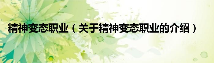 1、精神变态职业是指那些最容易因为工作原因,受职业病影响而引起精神变态的特殊职业。
