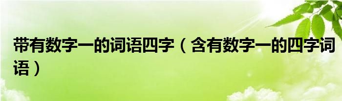 关于带有数字一的词语四字,含有数字一的四字词语这个很多人还不知道,今天菲菲来为大家解答以上的问题,现在让我们一起来看看吧!