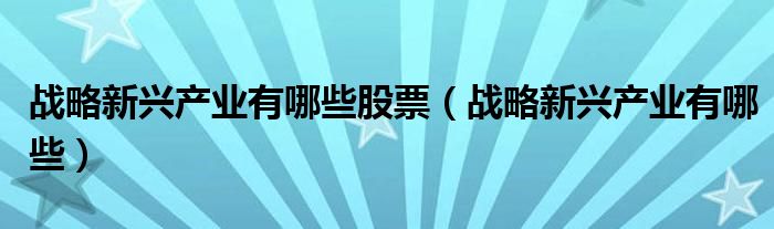 关于战略新兴产业有哪些股票,战略新兴产业有哪些这个很多人还不知道,今天菲菲来为大家解答以上的问题,现在让我们一起来看看吧!