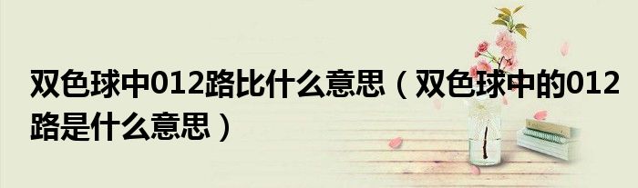 关于双色球中012路比什么意思,双色球中的012路是什么意思这个很多人还不知道,今天菲菲来为大家解答以上的问题,现在让我们一起来看看吧!