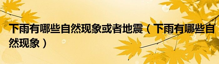 关于下雨有哪些自然现象或者地震,下雨有哪些自然现象这个很多人还不知道,今天菲菲来为大家解答以上的问题,现在让我们一起来看看吧!