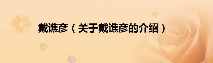 大家好,今天小乐来为大家解答以上的问题。戴谯彦,关于戴谯彦的介绍很多人还不知道,现在让我们一起来看看吧!