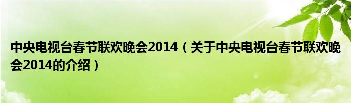 大家好,今天小乐来为大家解答以上的问题。中央电视台春节联欢晚会2014,关于中央电视台春节联欢晚会2014的介绍很多人还不知道,现在让我们一起来看看吧!