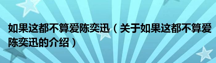 如果这都不算爱陈奕迅(关于如果这都不算爱陈奕迅的介绍)