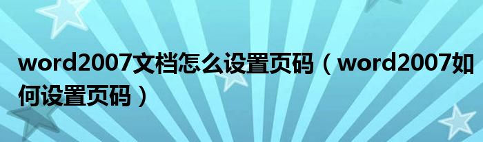 最佳答案关于word2007文档怎么设置页码,word2007如何设置页码这个很多人还不知道,今天菲菲来为大家解答以上的问题,现在让我们一起来看看吧!1、插入---页码---设置页码格式---起始面码---3。本文到此分享完毕,希望对大家有所帮助。