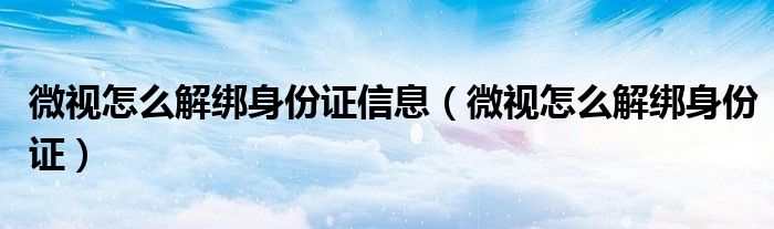 大家好,小晋来为大家解答以下问题,关于微视怎么解绑身份证信息,微视怎么解绑身份证很多人还不知道,今天让我们一起来看看吧!