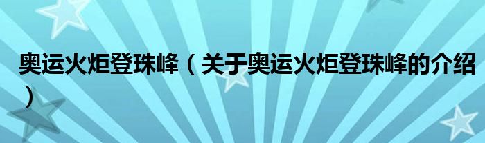 大家好,今天小乐来为大家解答以上的问题。奥运火炬登珠峰,关于奥运火炬登珠峰的介绍很多人还不知道,现在让我们一起来看看吧!
