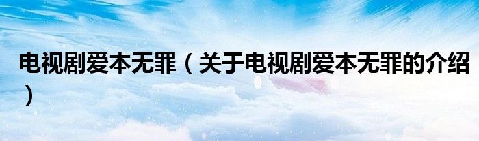 大家好,今天小乐来为大家解答以上的问题。电视剧爱本无罪,关于电视剧爱本无罪的介绍很多人还不知道,现在让我们一起来看看吧!
