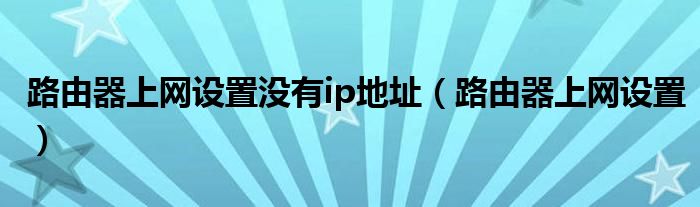 大家好,雨雨来为大家解答以上问题,路由器上网设置没有ip地址,路由器上网设置很多人还不知道,现在让我们一起来看看吧!