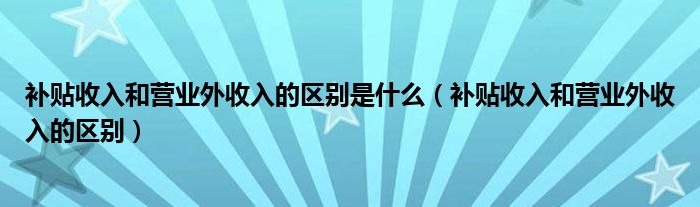 关于补贴收入和营业外收入的区别是什么,补贴收入和营业外收入的区别这个很多人还不知道,今天菲菲来为大家解答以上的问题,现在让我们一起来看看吧!
