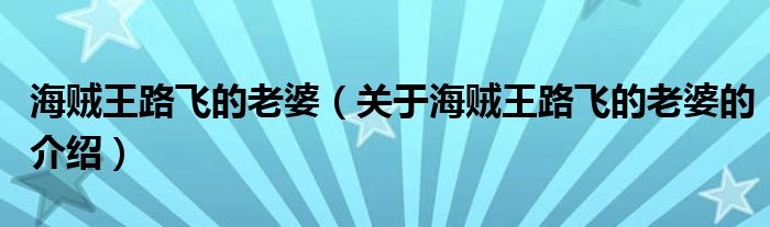 大家好,今天小乐来为大家解答以上的问题。海贼王路飞的老婆,关于海贼王路飞的老婆的介绍很多人还不知道,现在让我们一起来看看吧!