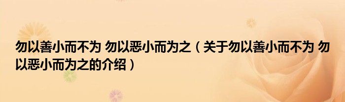 勿以善小而不为 勿以恶小而为之(关于勿以善小而不为 勿以恶小而为之的介绍)