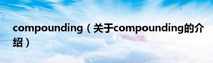 大家好,小都来为大家解答以上的问题。compounding,关于compounding的介绍很多人还不知道,现在让我们一起来看看吧!