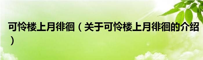 大家好,小都来为大家解答以上的问题。可怜楼上月徘徊,关于可怜楼上月徘徊的介绍很多人还不知道,现在让我们一起来看看吧!