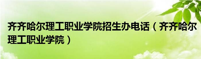关于齐齐哈尔理工职业学院招生办电话,齐齐哈尔理工职业学院这个很多人还不知道,今天菲菲来为大家解答以上的问题,现在让我们一起来看看吧!