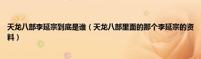 关于天龙八部李延宗到底是谁,天龙八部里面的那个李延宗的资料这个很多人还不知道,今天菲菲来为大家解答以上的问题,现在让我们一起来看看吧!