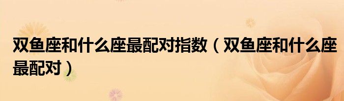 关于双鱼座和什么座最配对指数,双鱼座和什么座最配对这个很多人还不知道,今天菲菲来为大家解答以上的问题,现在让我们一起来看看吧!