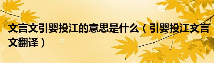 关于文言文引婴投江的意思是什么,引婴投江文言文翻译这个很多人还不知道,今天菲菲来为大家解答以上的问题,现在让我们一起来看看吧!
