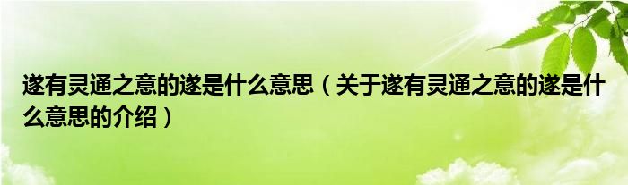 大家好,小都来为大家解答以上的问题。遂有灵通之意的遂是什么意思,关于遂有灵通之意的遂是什么意思的介绍很多人还不知道,现在让我们一起来看看吧!