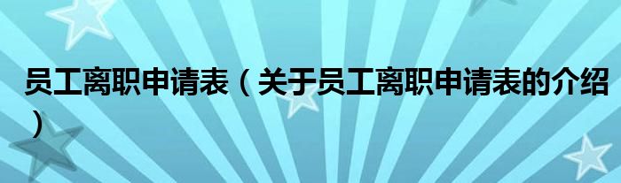 大家好,小都来为大家解答以上的问题。员工离职申请表,关于员工离职申请表的介绍很多人还不知道,现在让我们一起来看看吧!