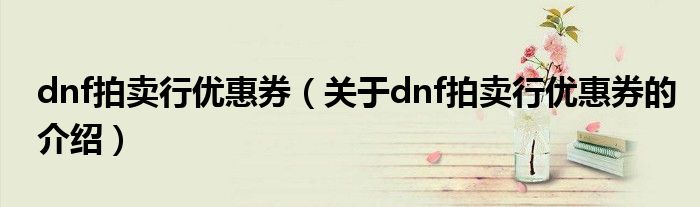 大家好,小都来为大家解答以上的问题。dnf拍卖行优惠券,关于dnf拍卖行优惠券的介绍很多人还不知道,现在让我们一起来看看吧!
