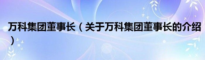 大家好,小都来为大家解答以上的问题。万科集团董事长,关于万科集团董事长的介绍很多人还不知道,现在让我们一起来看看吧!