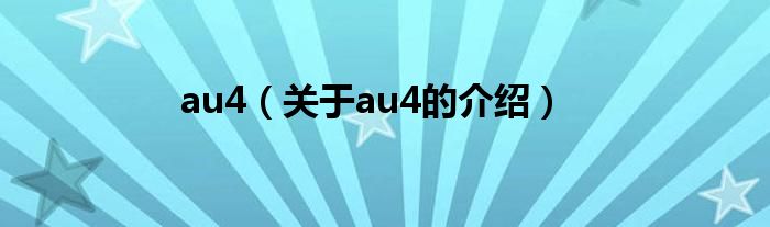 大家好,小都来为大家解答以上的问题。au4,关于au4的介绍很多人还不知道,现在让我们一起来看看吧!