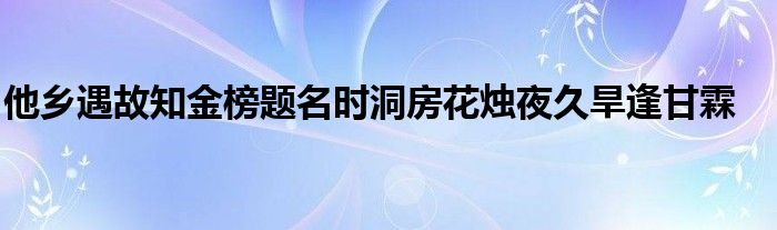 关于他乡遇故知金榜题名时洞房花烛夜久旱逢甘霖这个很多人还不知道,今天菲菲来为大家解答以上的问题,现在让我们一起来看看吧!