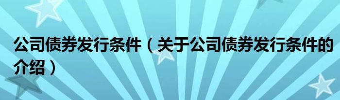 公司债券发行条件(关于公司债券发行条件的介绍)