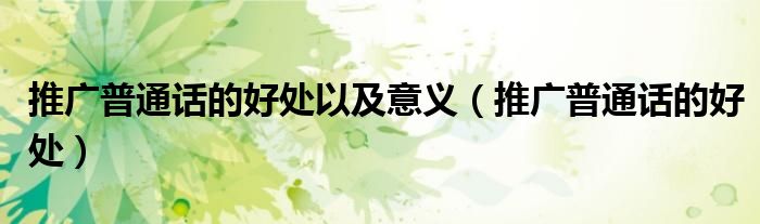关于推广普通话的好处以及意义,推广普通话的好处这个很多人还不知道,今天菲菲来为大家解答以上的问题,现在让我们一起来看看吧!