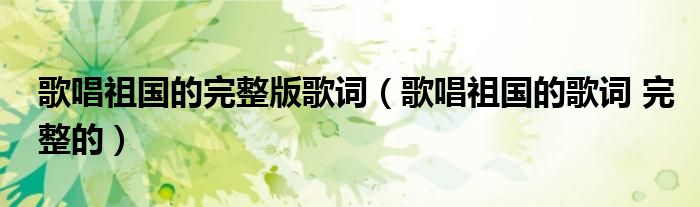 1、[歌名:歌唱祖国][ar:大合唱][al:歌唱祖国][by:☆冰☆炽翼☆]★★★★★歌唱祖国五星红旗迎风飘扬,胜利歌声多么响亮!歌唱我们亲爱的祖国,从今走向繁荣富强!歌唱我们亲爱的祖国,从今走向繁荣富强!越过高山,越过平原,跨过奔腾的黄河长江;宽广美丽的土地,是我们亲爱的家乡.英雄的人民站起来了!我们团结友爱坚强如钢!五星红旗迎风飘扬,胜利歌声多么响亮!歌唱我们亲爱的祖国,从今走向繁荣富强!歌唱我们亲爱的祖国,从今走向繁荣富强!我们勤劳,我们勇敢,独立自由是我们的理想;我们战胜了多少苦难,才得到今天的解放!我们爱和平,我们爱家乡.谁敢侵犯我们就叫他灭亡!五星红旗迎风飘扬,胜利歌声多么响亮!歌唱我们亲爱的祖国,从今走向繁荣富强!歌唱我们亲爱的祖国,从今走向繁荣富强!东方太阳,正在升起,人民共和国正在成长;我们领袖毛泽东,指引着前进的方向.我们的生活天天向上,我们的前途万丈光芒!五星红旗迎风飘扬,胜利歌声多么响亮!歌唱我们亲爱的祖国,从今走向繁荣富强!歌唱我们亲爱的祖国,从今走向繁荣富——强!。