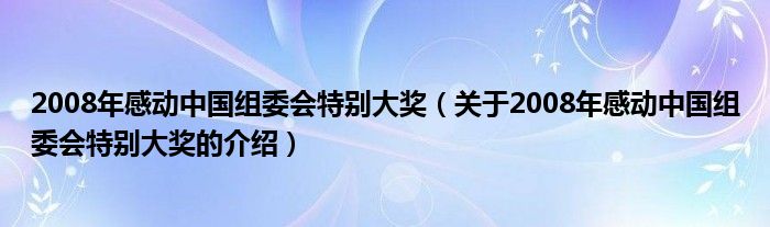 大家好,小都来为大家解答以上的问题。2008年感动中国组委会特别大奖,关于2008年感动中国组委会特别大奖的介绍很多人还不知道,现在让我们一起来看看吧!