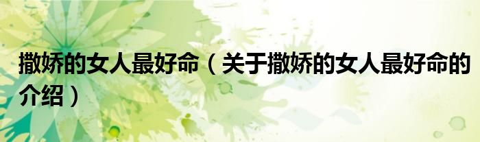 撒娇的女人最好命(关于撒娇的女人最好命的介绍)