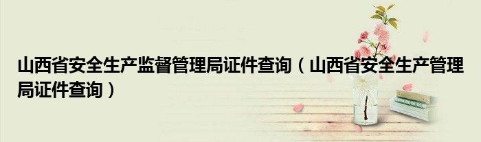 关于山西省安全生产监督管理局证件查询,山西省安全生产管理局证件查询这个很多人还不知道,今天菲菲来为大家解答以上的问题,现在让我们一起来看看吧!