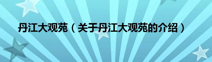 大家好,小都来为大家解答以上的问题。丹江大观苑,关于丹江大观苑的介绍很多人还不知道,现在让我们一起来看看吧!