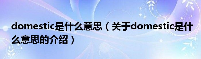 大家好,小都来为大家解答以上的问题。domestic是什么意思,关于domestic是什么意思的介绍很多人还不知道,现在让我们一起来看看吧!