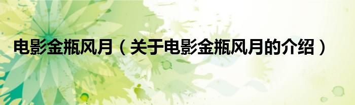 大家好,小都来为大家解答以上的问题。电影金瓶风月,关于电影金瓶风月的介绍很多人还不知道,现在让我们一起来看看吧!