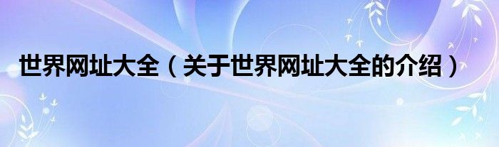 大家好,小都来为大家解答以上的问题。世界网址大全,关于世界网址大全的介绍很多人还不知道,现在让我们一起来看看吧!
