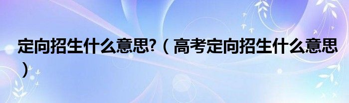 定向招生什么意思?(高考定向招生什么意思)