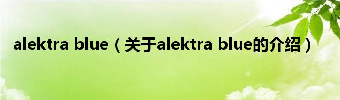 大家好,小都来为大家解答以上的问题。alektra blue,关于alektra blue的介绍很多人还不知道,现在让我们一起来看看吧!
