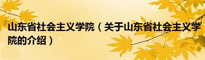 大家好,小都来为大家解答以上的问题。山东省社会主义学院,关于山东省社会主义学院的介绍很多人还不知道,现在让我们一起来看看吧!