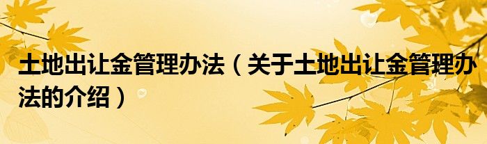大家好,小都来为大家解答以上的问题。土地出让金管理办法,关于土地出让金管理办法的介绍很多人还不知道,现在让我们一起来看看吧!