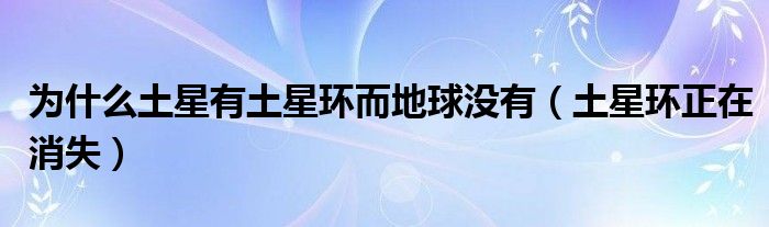 为什么土星有土星环而地球没有,土星环正在消失很多人还不知道,乐乐来为大家解答以上问题,现在让我们一起来看看吧!