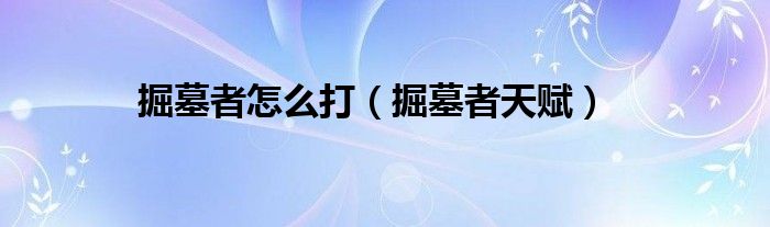 掘墓者怎么打,掘墓者天赋很多人还不知道,乐乐来为大家解答以上问题,现在让我们一起来看看吧!