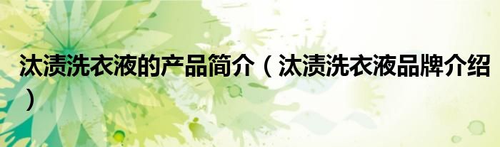 大家好,小源来为大家解答以上问题。汰渍洗衣液的产品简介,汰渍洗衣液品牌介绍很多人还不知道,现在让我们一起来看看吧!
