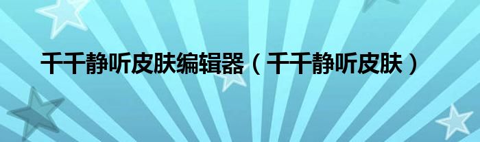 大家好,小飞来为大家解答以上问题,千千静听皮肤编辑器,千千静听皮肤很多人还不知道,现在让我们一起来看看吧!
